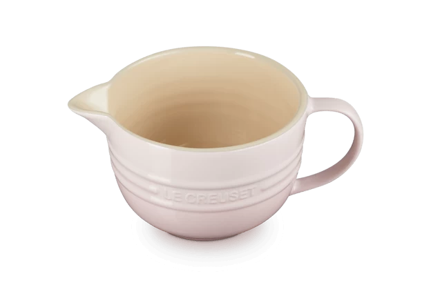 De ronde beslagkom van Le Creuset is gemaakt van roze geglazuurd aardewerk en heeft een diameter van 18,3 cm en een inhoud van 2 liter. De beslagkom heeft inclusief de greep een lengte van 26,1 cm. Gebruik de kom voor het mengen van beslag.