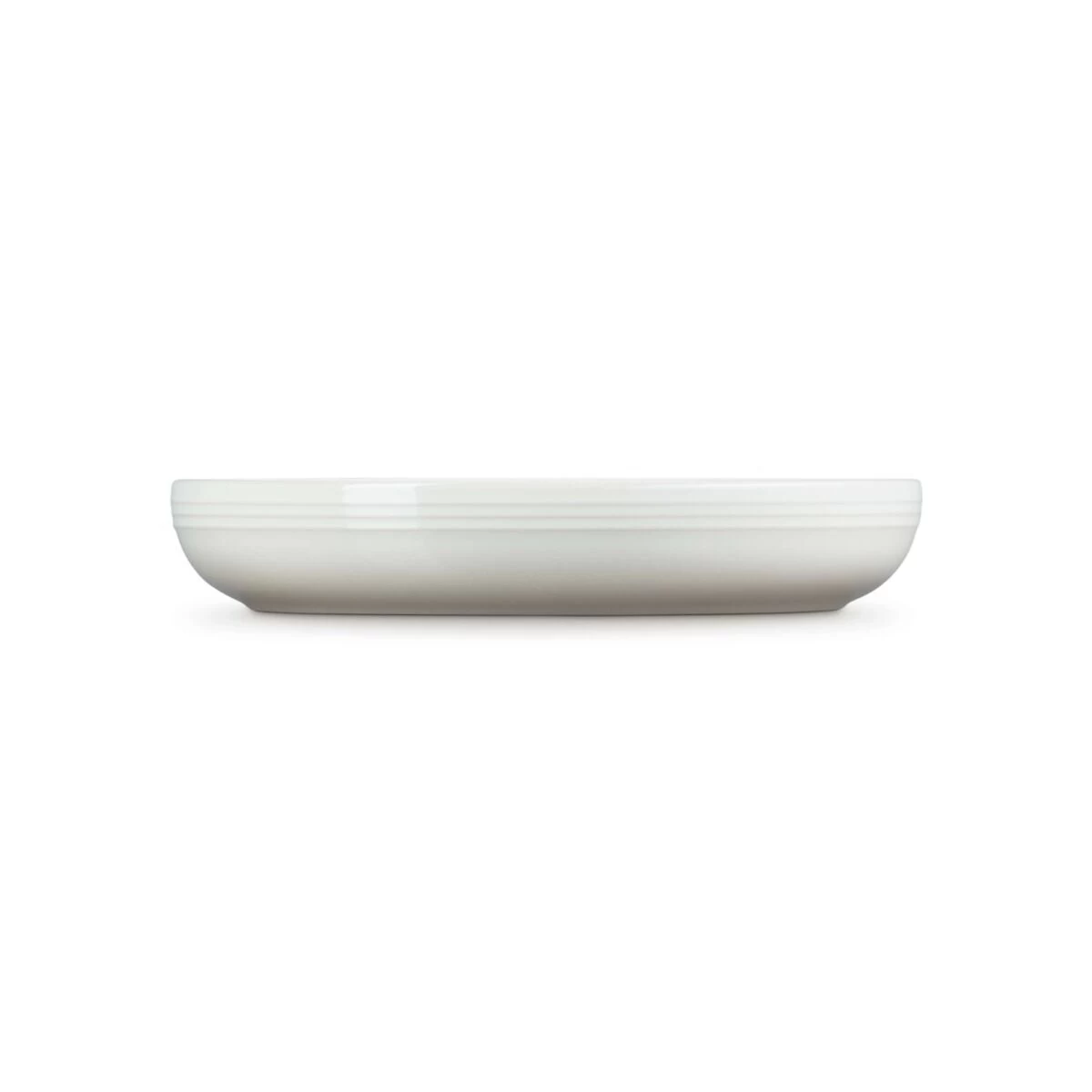 Het diepe bord van Le Creuset is gemaakt van geglazuurd aardewerk, uitgevoerd in crèmekleurig Meringue en heeft een glanzende afwerking. Het bord heeft een diameter van 22 cm.