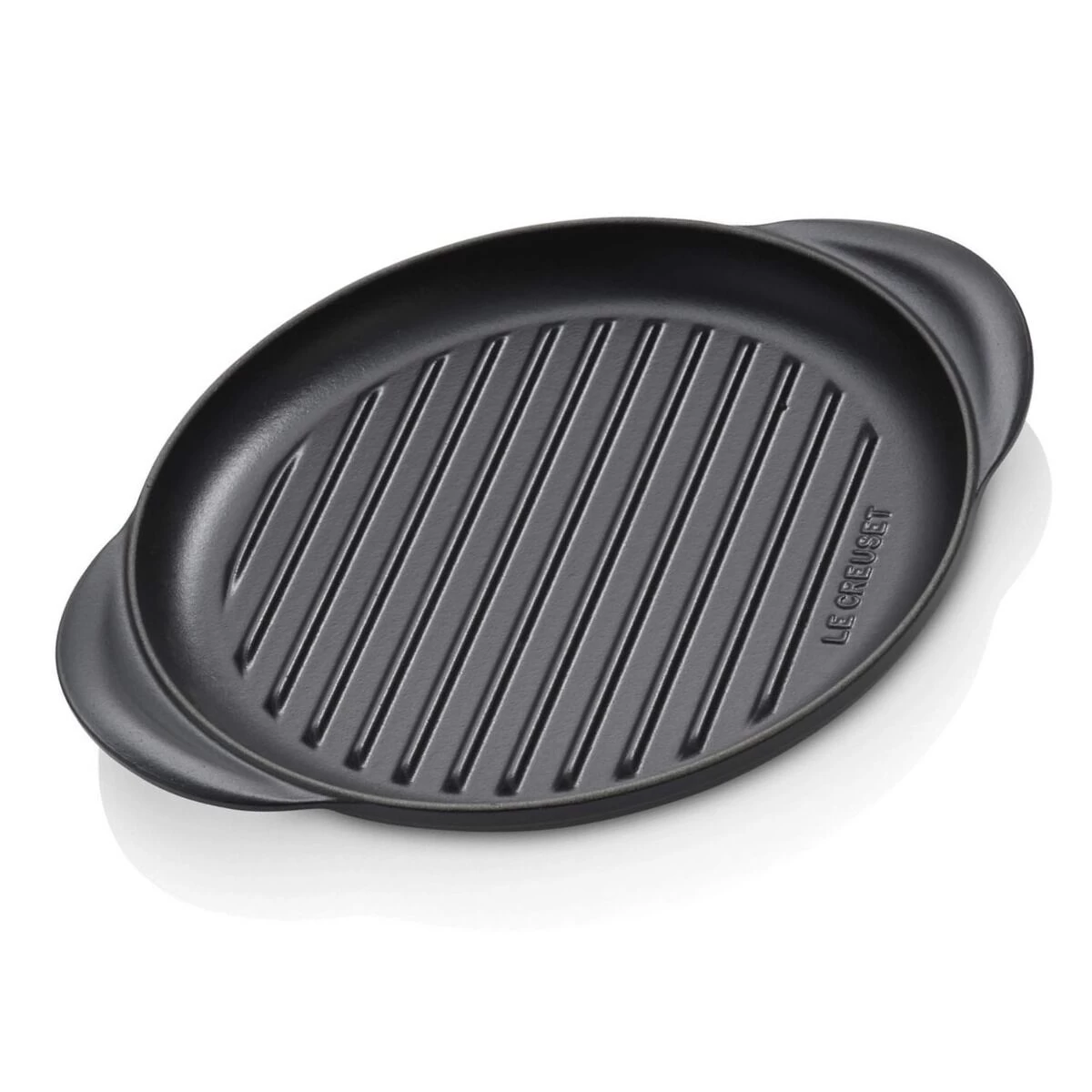 De ronde grillpan van Le Creuset heeft een diameter van 25 cm en is gemaakt van mat zwart geëmailleerd gietijzer. Dit zorgt voor een optimale warmtegeleiding en egale bruining van uw etenswaren. Gebruik de plaat voor het grillen van vlees, vis en groenten. Geschikt voor alle warmtebronnen, zoals gas en inductie en voor gebruik op de barbecue. Doordat er twee grepen aan de pan zitten is de grillpan gemakkelijk te verplaatsen maar neemt deze in de kast ook niet veel ruimte in.