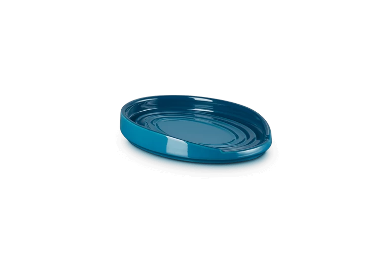 De ovale Le Creuset lepelhouder is gemaakt van blauw geglazuurd aardewerk. Het geglazuurde oppervlak is kras- en vlekbestendig en geur- en smaakneutraal. Tijdens het koken kunt u de lepel waarmee u roert op deze lepelhouder leggen.