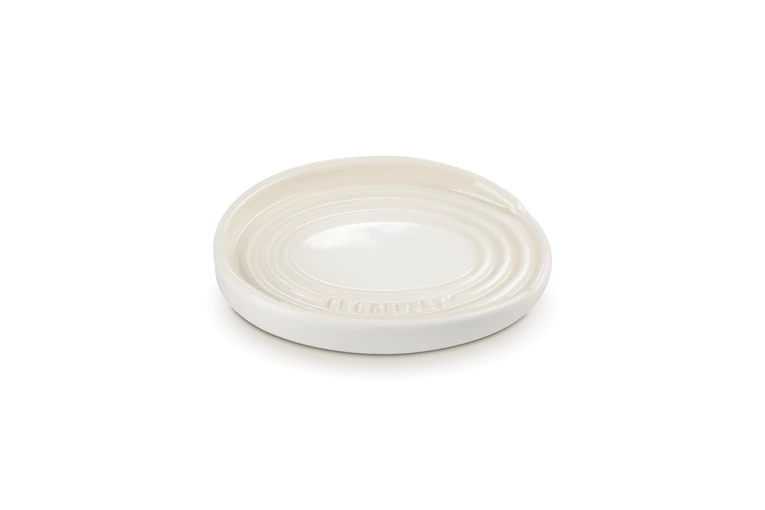 De ovale Le Creuset lepelhouder is gemaakt van crèmekleurig geglazuurd aardewerk. Het geglazuurde oppervlak is kras- en vlekbestendig en geur- en smaakneutraal. Tijdens het koken kunt u de lepel waarmee u roert op deze lepelhouder leggen.