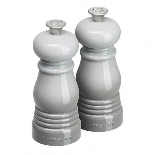 De peper- en zoutmolenset mist grey van Le Creuset is gemaakt van grijs kunststof en heeft een lengte van 11 cm. De molen heeft een klassiek ontwerp en is eenvoudig te vullen. Met het keramische maalmechanisme maalt u zowel grof en fijn. Het maalsysteem is eenvoudig aan te passen naar uw wens, zodat u uw gerechten altijd op de juiste smaak brengt. De sluitdoppen zijn voorzien van een duidelijke markering, waardoor de molens gemakkelijk te onderscheiden zijn.