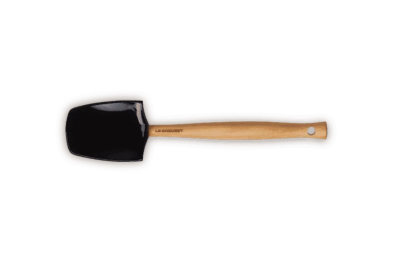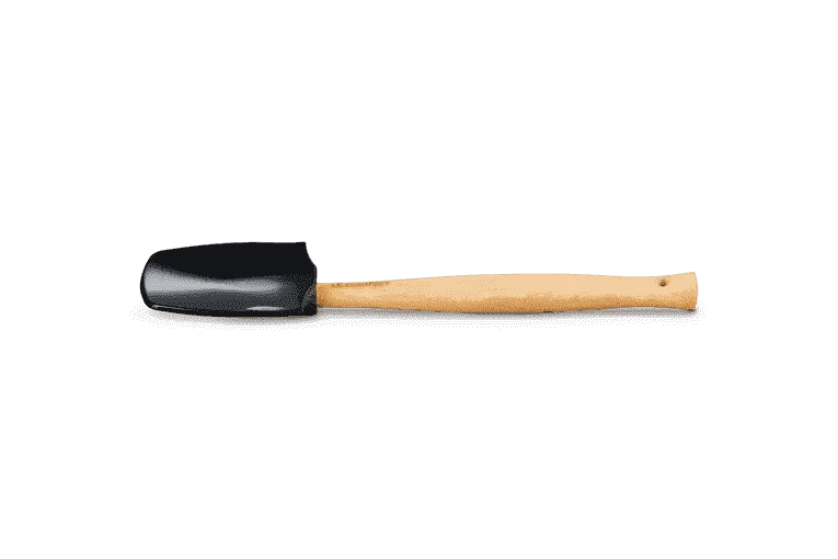 De zwarte Le Creuset grote spatel is gemaakt van hout en heeft een siliconen blad, waardoor de spatel niet krast. De spatel heeft een platte en bolle zijde en heeft een lengte van 28 cm. De breedte van het blad is 7 cm.