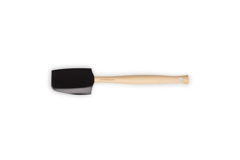 De Le Creuset Premium Medium spatel is gemaakt van hout en heeft een zwarte siliconen blad, waardoor de spatel niet krast. De spatel heeft een platte en bolle zijde en heeft een lengte van 28,5 cm. De breedte van het blad is 5,8 cm.